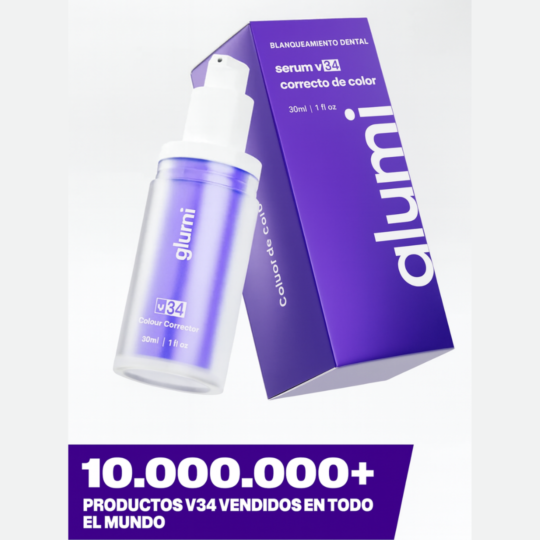 Tecnología V34 desarrollada por dentistas que blanquea y elimina el amarillo de tus dientes desde el primer uso.